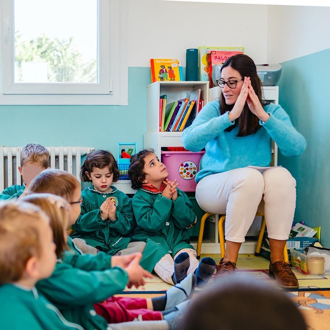 En maternelle, les enfants s’enrichissent et élargissent leur univers sous le regard permanent du Bon Dieu. Selon le rythme de l'enfant, tous les repères sont appris à travers le dessin, le geste, le chant et les jeux. Les bases sont acquises pour pouvoir commencer, bien sereinement le primaire.