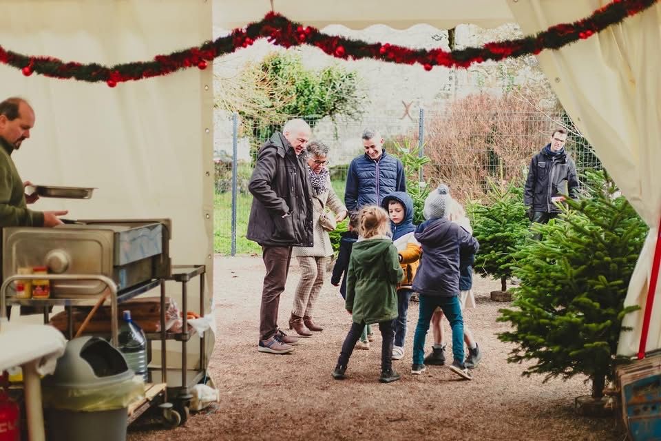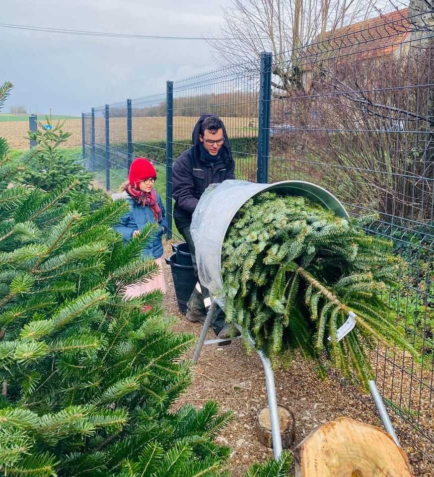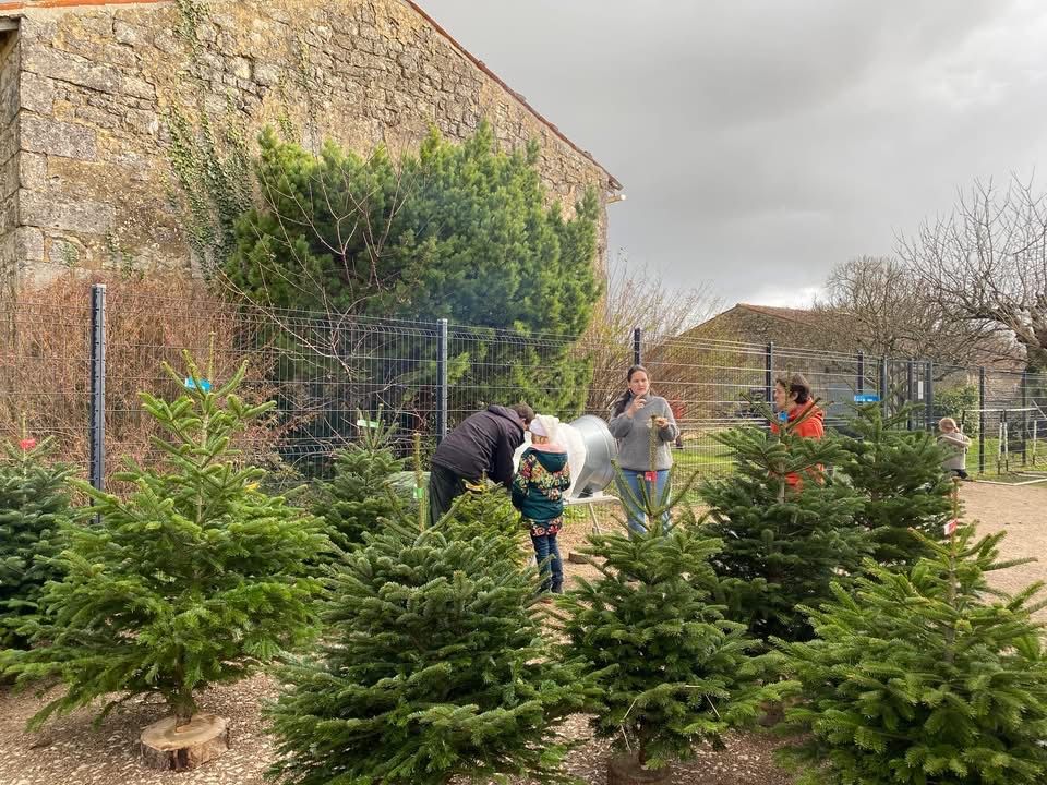 Sapins à choisir et récupérer le jour du marché de Noël à l’école, le 7 décembre 2024.