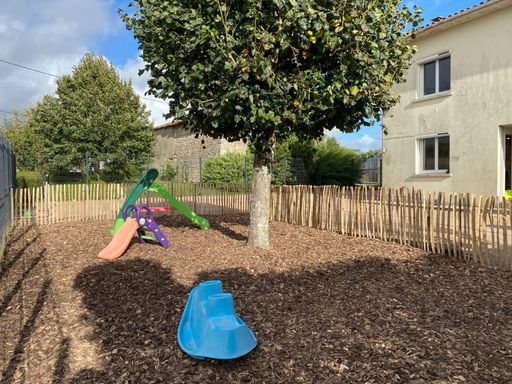 Sur la commune de Saintes et à 5 minutes en voiture de l’hyper centre, dans un cadre magnifique, en pleine campagne, avec une grande cour de récréation arborée et vue sur les champs environnants.